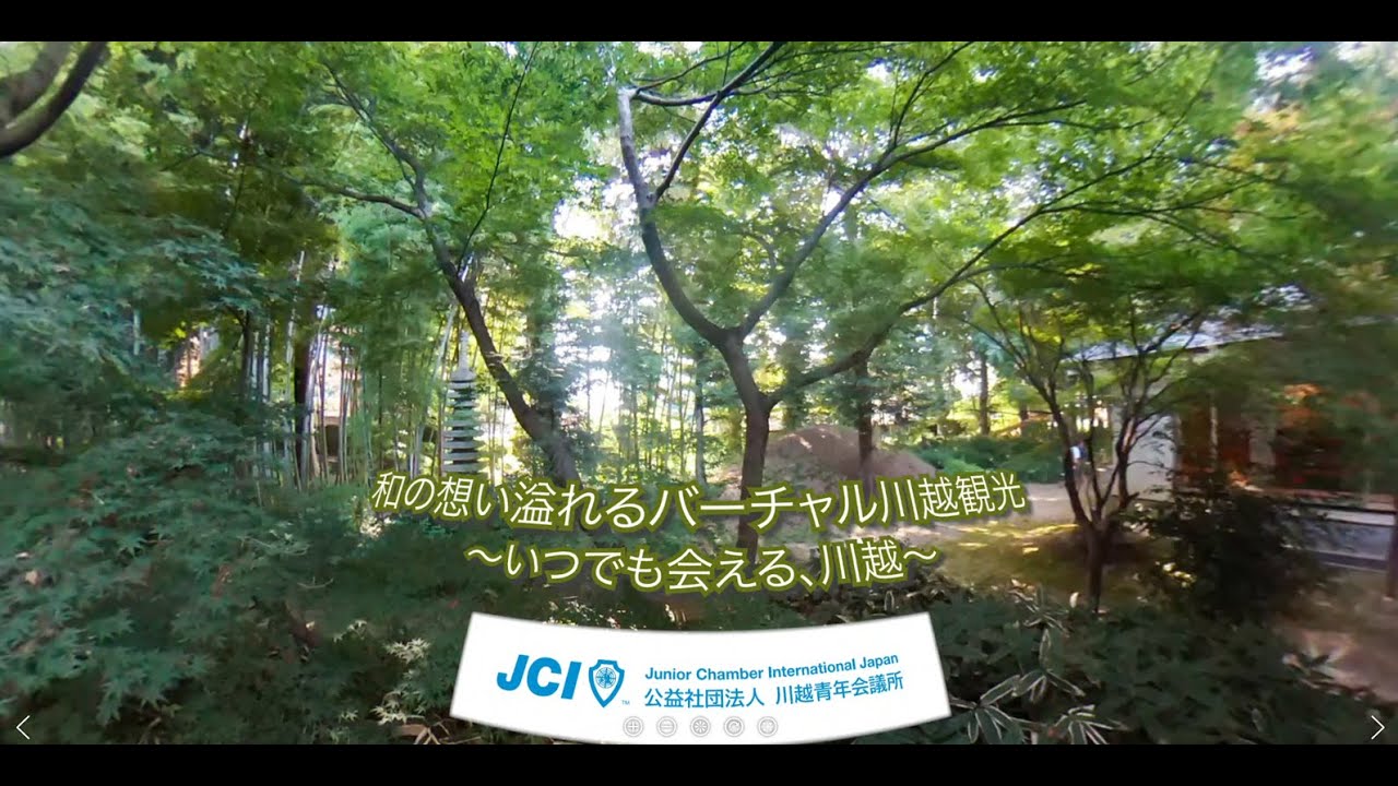 川越一番街商店街の理事長さんや菓子屋横丁の会長さんなどが観光案内をしてくれるVR動画です。案内の音声を聞きながら、画面内を360度見渡すことができます。